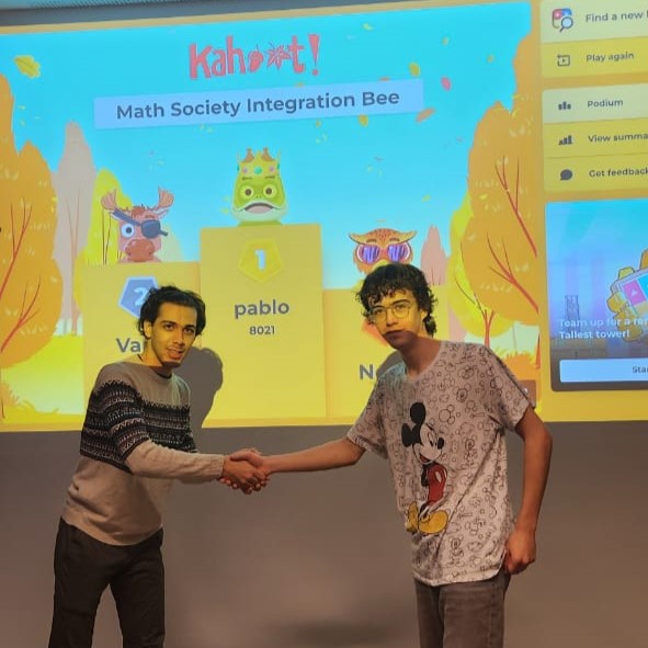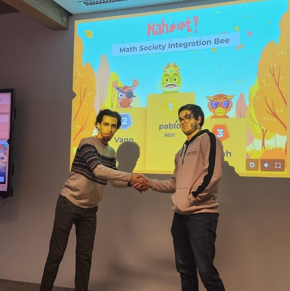 Vano wins the first two rounds! He redeems himself after a second-place finish in the qualifiers. Many congratulations to the Math Society’s new integration bee. 🐝